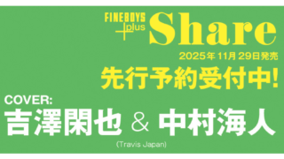 雑誌FINEBOYS+plus Share vol.3 (表紙/中村海人&吉澤閑也) 11/29発売 「FINEBOYS+plus Share vol.3」 掲載内容詳細 《表紙》 中村海人&吉澤閑也 FINEBOYS+plus Share vol.3 Amazon 楽天ブックス 7net TOWER RECORDS2025.11.10中村海人吉澤閑也雑誌