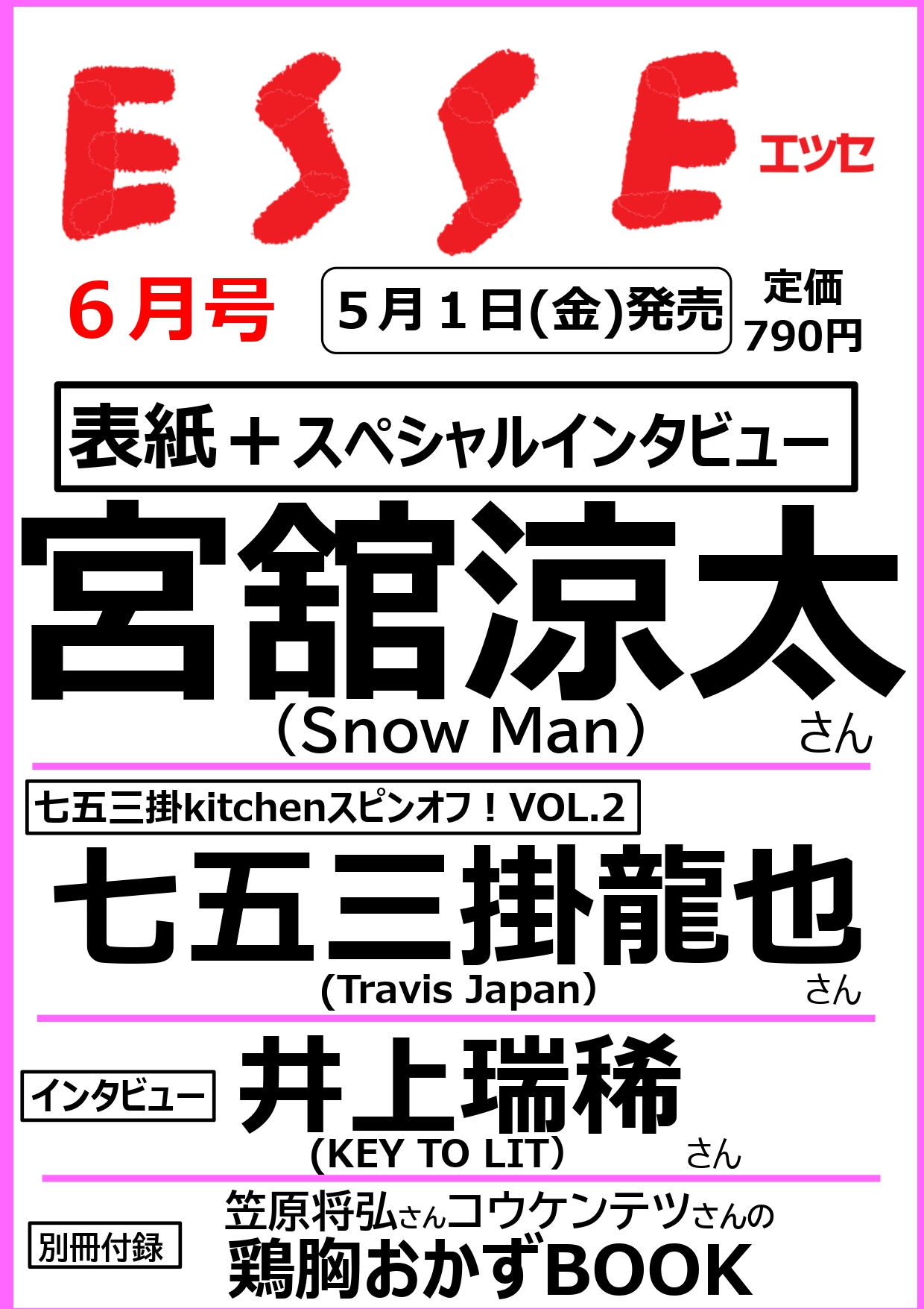 ESSE 2026年 6月号雑誌2026.04.035/1発売 「ESSE 6月号」 掲載内容詳細 《七五三掛kitchenスピンオフ!VOL.2》七五三掛龍也ESSE 2026年 6月号Amazon楽天ブックス7netTOWER RECORDS