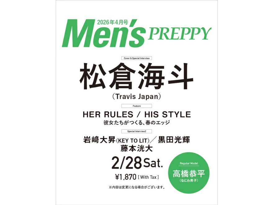 Men’s 2026年 PREPPY 4月号 (表紙/松倉海斗)雑誌2026.01.282/28発売 「Men's PREPPY 4月号」 掲載内容詳細 《表紙&SPインタビュー》松倉海斗Men's 2026年 PREPPY 4月号Amazon楽天ブックス7netTOWER RECORDS